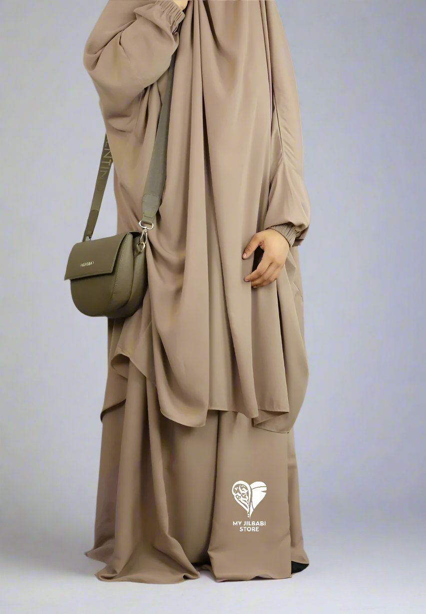 Matte finish two piece, tie-back jilbab made from a lightweight crepe fabric with a superb flow and drape. Khimar features an integrated niqab and as always, perfect face fitting as standard, no exposed necks! Fabric suitable for all seasons.