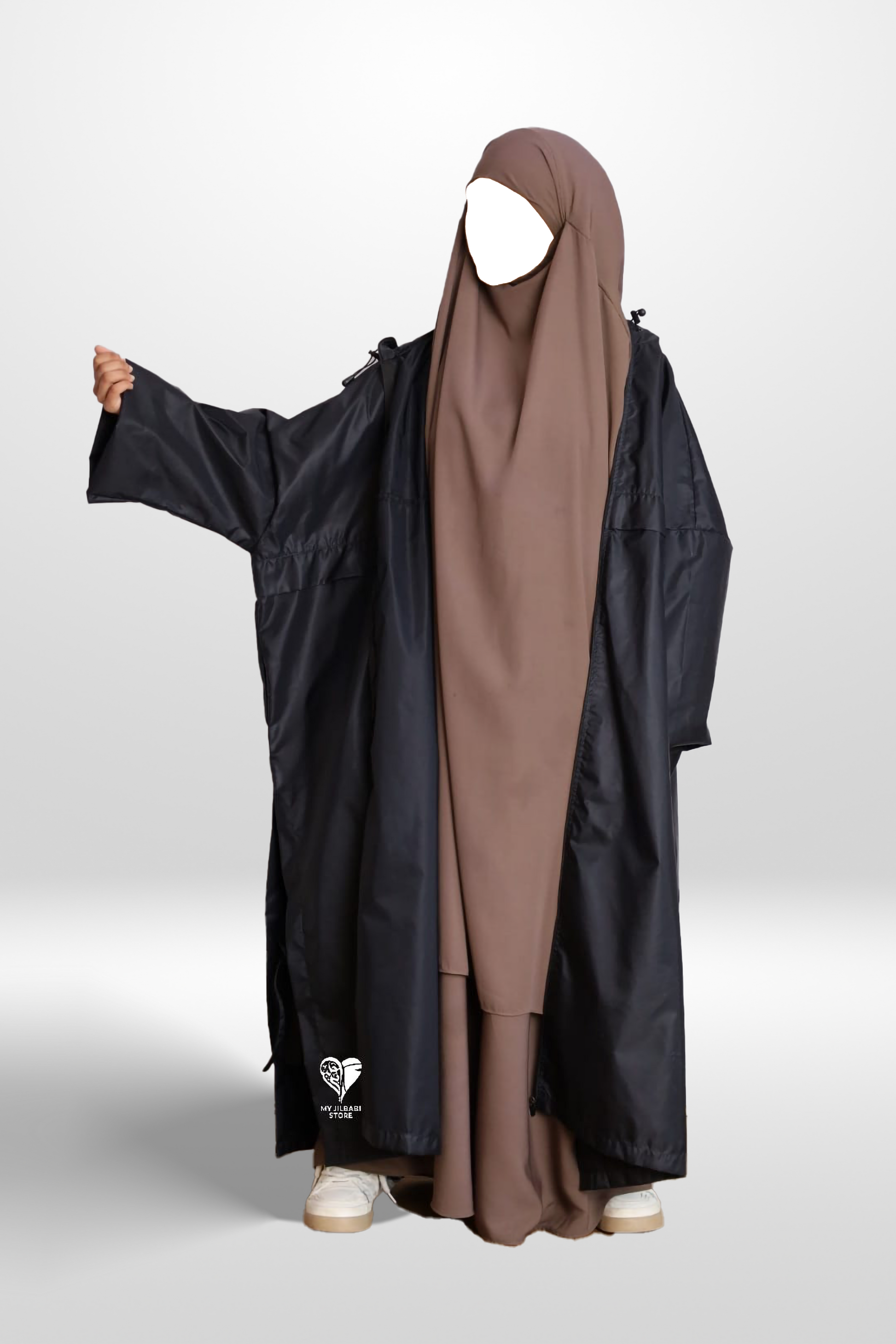 Introducing our 100% Showerproof Lightweight Jilbab Rain Mac, designed to keep you dry and comfortable during unpredictable showers. Crafted with practicality in mind, this rain mac offers reliable protection against the elements without compromising on functionality.